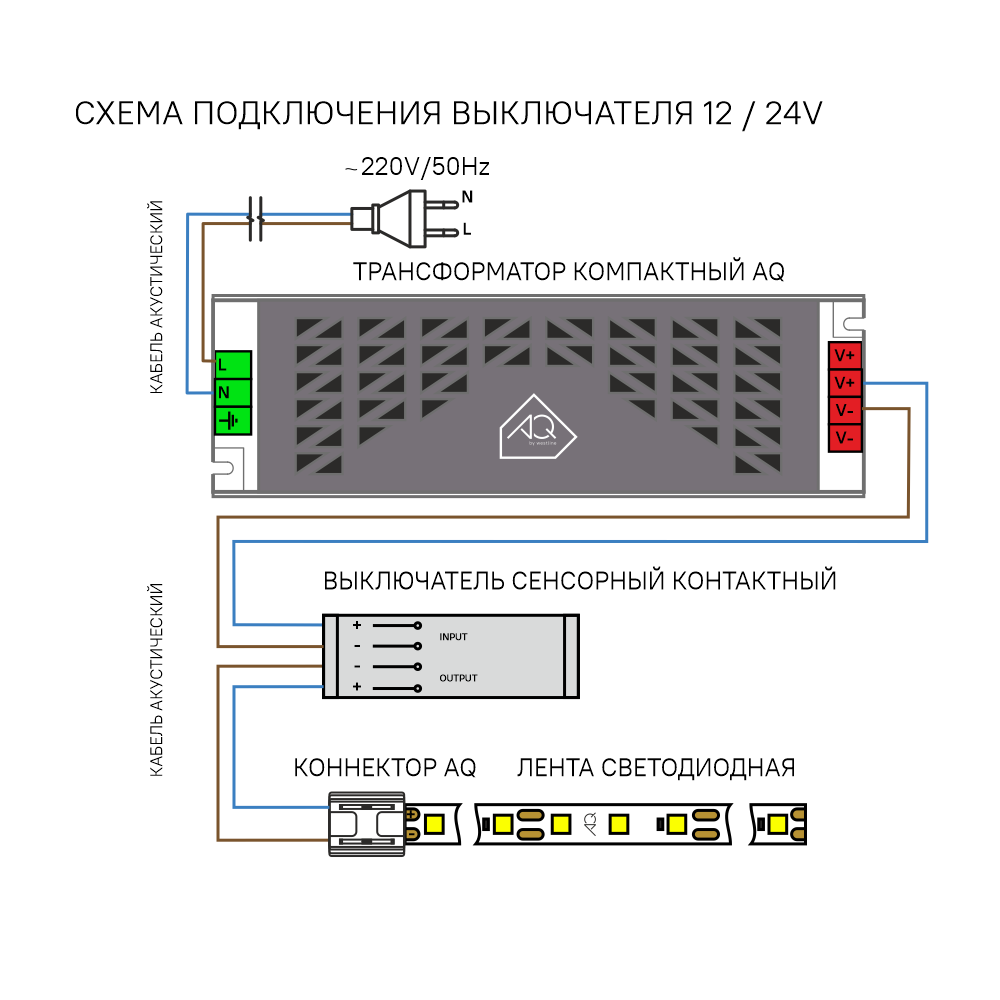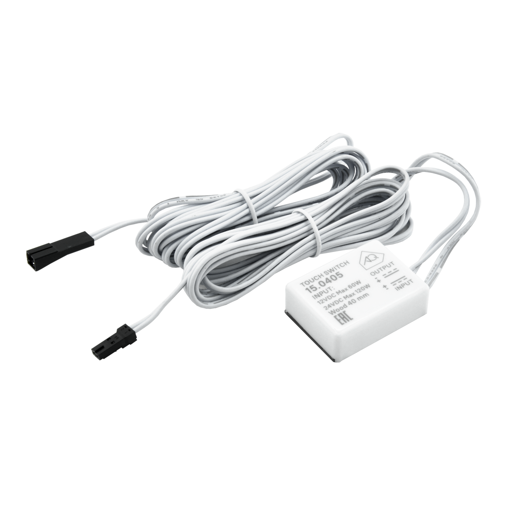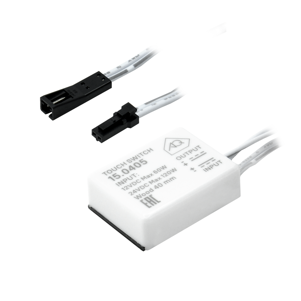 Сенсорный контактный выключатель создан для установки под столешницу или на обратную сторону фасада. Он реагирует на кратковременное прикосновение руки, позволяя включать и выключать подсветку, а также регулировать её яркость длительным прикосновением. Устройство оснащено плавным пуском, что обеспечивает мягкое и комфортное управление освещением. Выключатель легко монтируется накладным способом с использованием двухстороннего скотча.