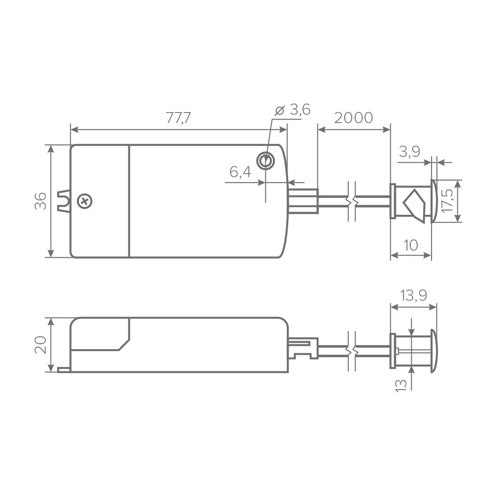 Длина кабеля датчиков, мм